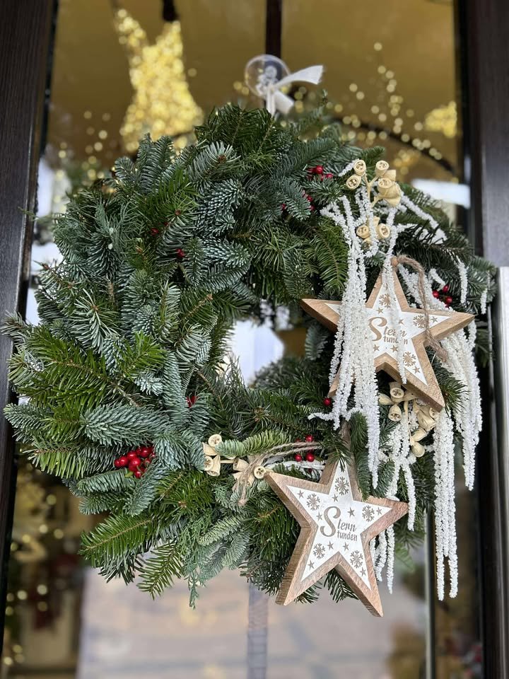 CORONITA DIN CETINA NATURALA CU STELE DIN LEMN SI ACCESORII
